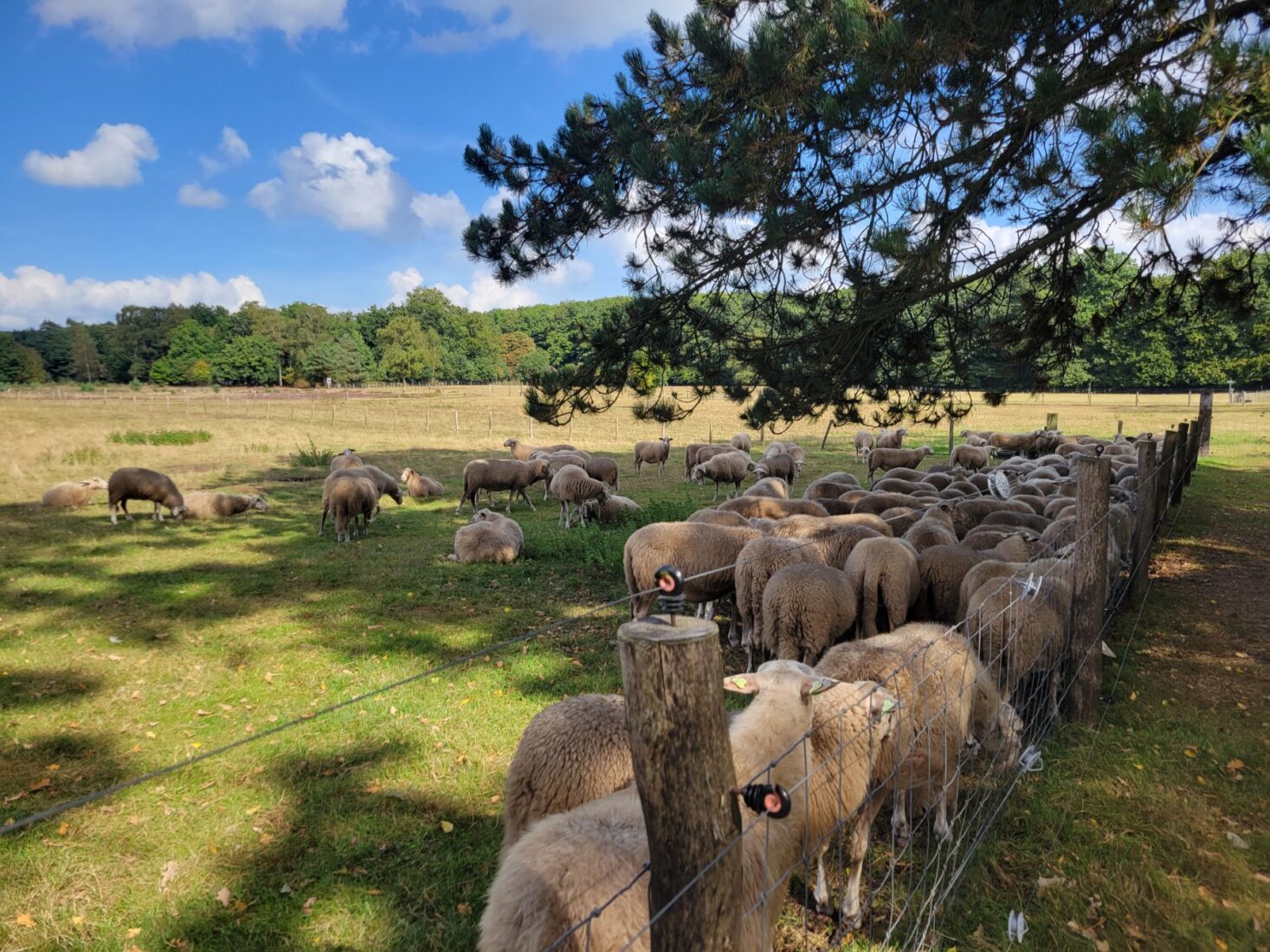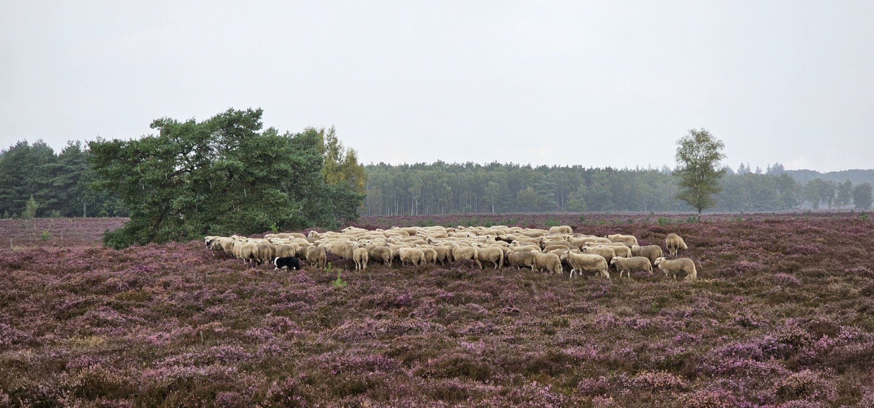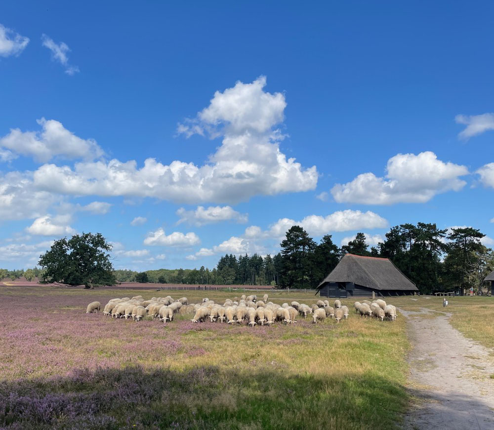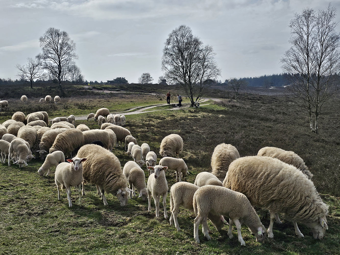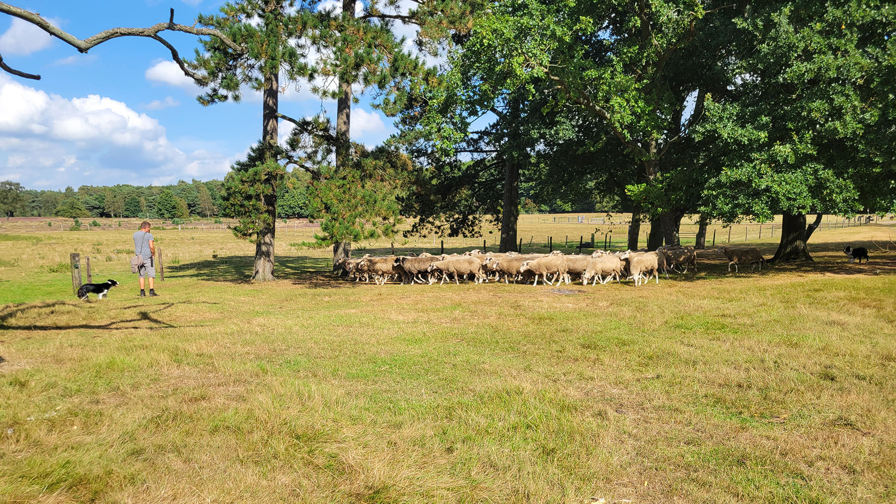 Onze kudde bestaat uit zo’n 140 Veluwse Heideschapen en is een ‘gescheperde’ kudde omdat ze elke dag onder (bege)leiding van een herder en zijn honden er op uit trekt. Meestal komt de meute aan het eind van de middag weer terug bij de schaapskooi.